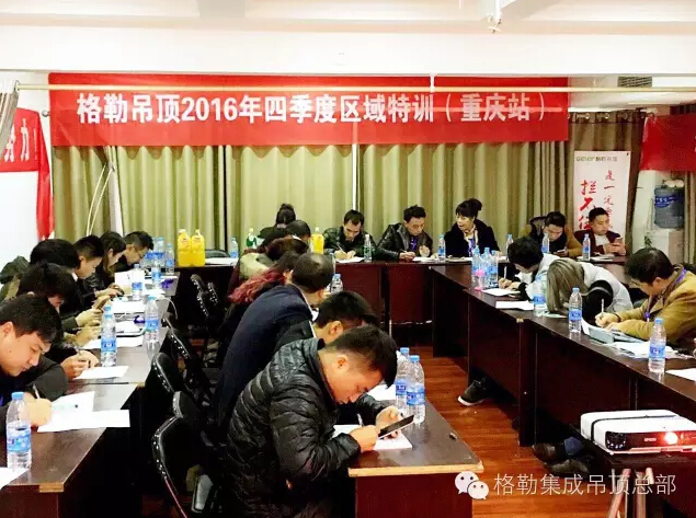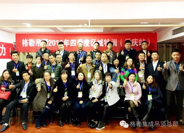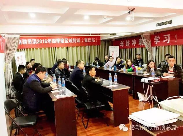 就在全國喜迎一年一度的11.11的時候,格勒集成吊頂卻在來和你相遇的路上。繼北京,太原站后,11月9號,格勒吊頂“好店面、新終端”推進(jìn)會暨四季度區(qū)域特訓(xùn)會第三站在美麗的山城重慶開啟,公司營銷總監(jiān)京總、活動組長張總和區(qū)域經(jīng)理親臨活動現(xiàn)場,與格勒家人相聚一堂,共同探討學(xué)習(xí)產(chǎn)品知識、分享銷售經(jīng)驗及制定戰(zhàn)略目標(biāo)。