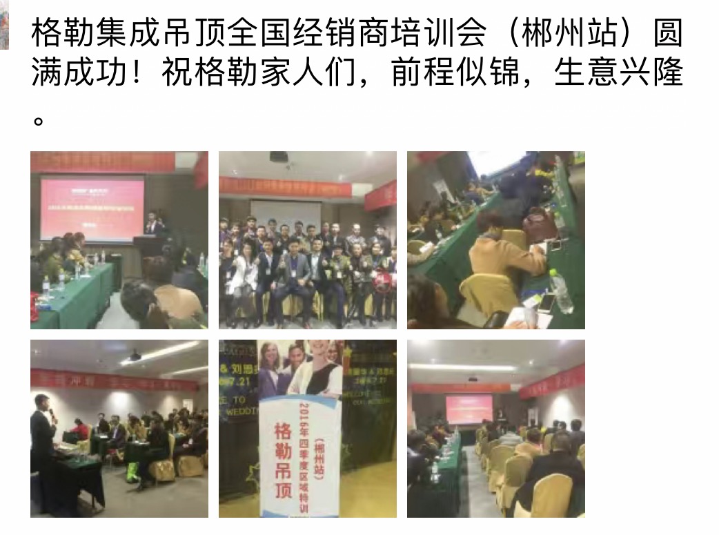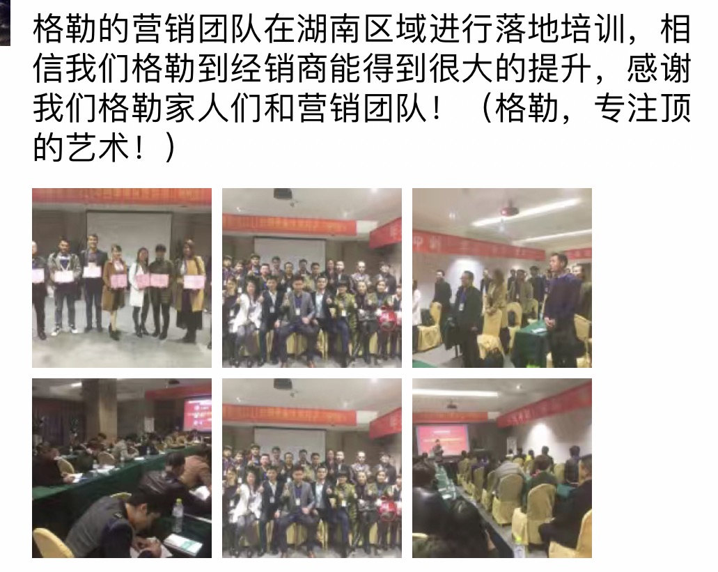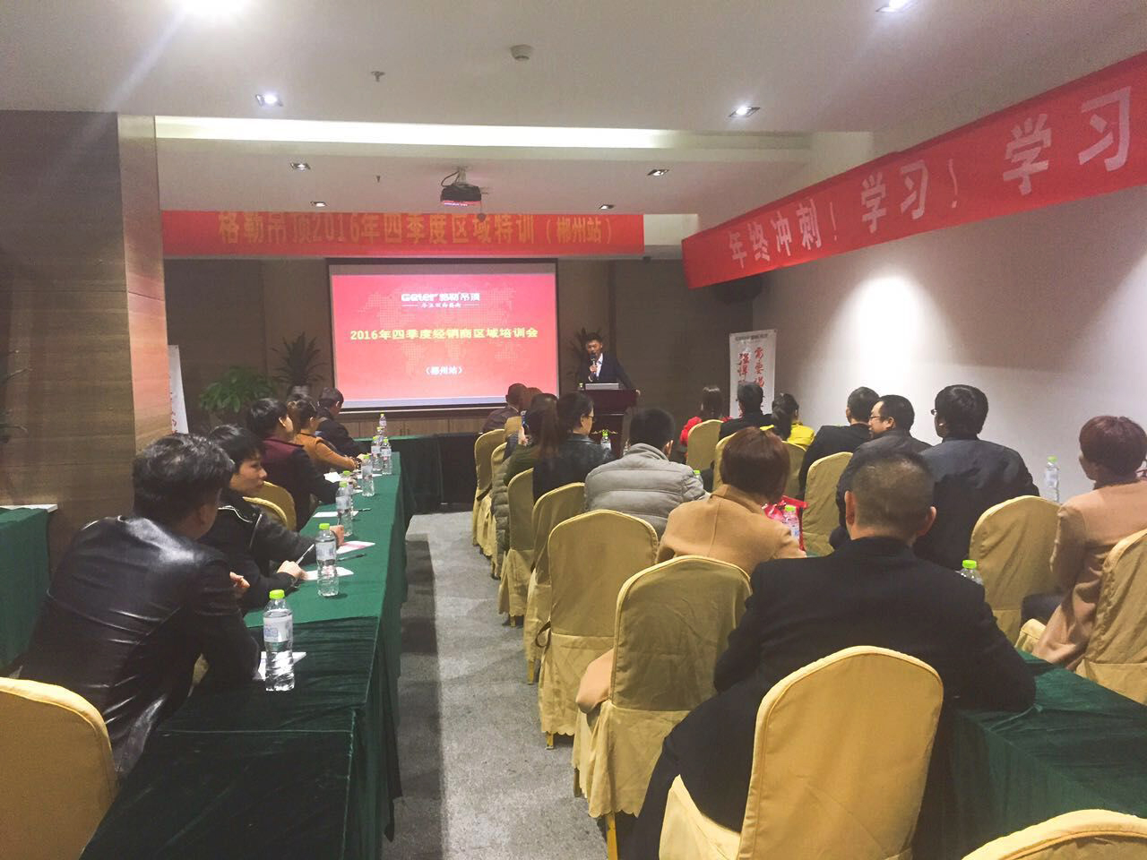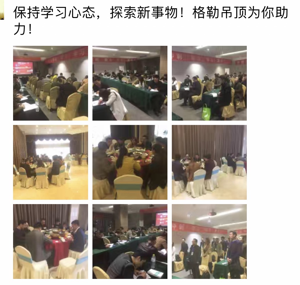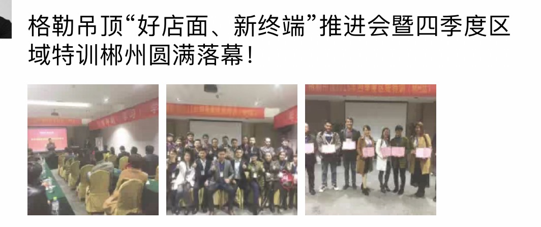 2016年格勒集成吊頂“好店面、新終端”推進(jìn)會(huì)暨四季度區(qū)域特訓(xùn)會(huì)重慶站剛剛落幕, 11月15號(hào),第四站在鐘靈毓秀的福城湖南郴州今悅大酒店拉開(kāi)序幕,來(lái)自湖南、湖北、廣西等地區(qū)的格勒家人參加了本次培訓(xùn)會(huì),針對(duì)公司產(chǎn)品、市場(chǎng)營(yíng)銷(xiāo)、互聯(lián)網(wǎng)營(yíng)銷(xiāo)等進(jìn)行了系統(tǒng)的學(xué)習(xí)。