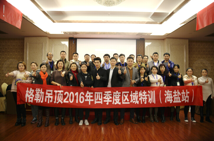 2016年格勒集成吊頂“好店面、新終端”推進(jìn)會(huì)暨四季度區(qū)域特訓(xùn)會(huì)第五站江西贛州站剛剛落幕,12月1日,在格勒吊頂總部所在地—嘉興海鹽開(kāi)啟第六站的學(xué)習(xí)之路。來(lái)自浙江、福建、安徽的20余位家人在海鹽天都酒店歡聚一堂,相互探討。