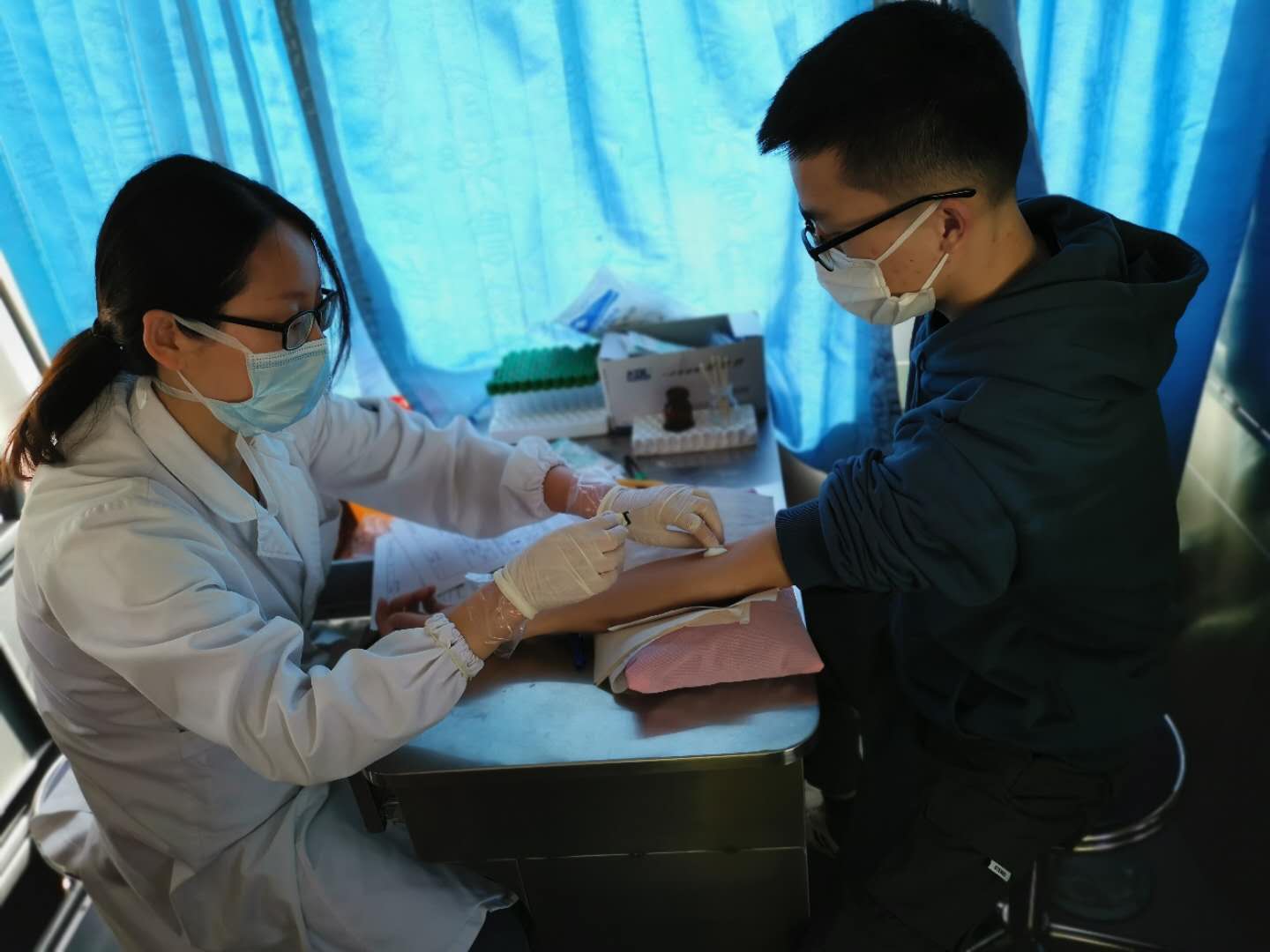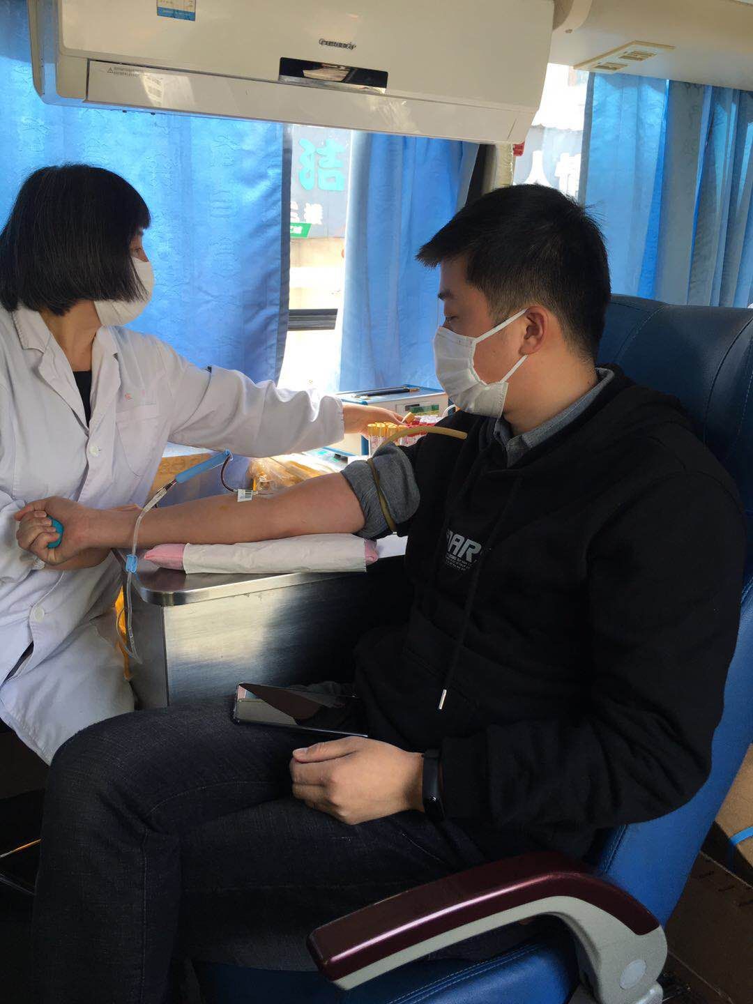 在市中心血站工作人員的引導(dǎo)下,大家認(rèn)真填寫獻血登記表、測量血壓、抽血化驗,經(jīng)血液檢驗合格后再開始無償獻血。