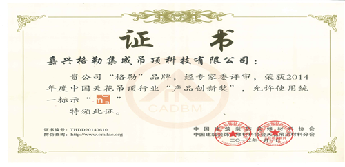 不斷提高產(chǎn)品的科技創(chuàng)新意識是時代對集成吊頂行業(yè)的要求,而格勒始終將“以科研、創(chuàng)新、信譽鑄就格勒吊頂”作為經(jīng)營理念。產(chǎn)品創(chuàng)新是企業(yè)持久發(fā)展并且做大做強的生命力。所謂“念念不忘,必有回響”,我想格勒集成吊頂榮獲中國產(chǎn)品創(chuàng)新獎是最好的詮釋。