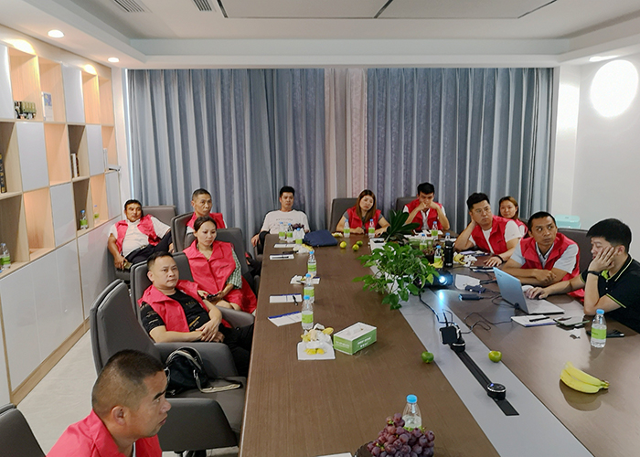 參觀完畢后,眾人來到會場。富經(jīng)理對剛剛在參觀過程中的分享進(jìn)行總結(jié),并為大家?guī)韺崙?zhàn)案例的分析。